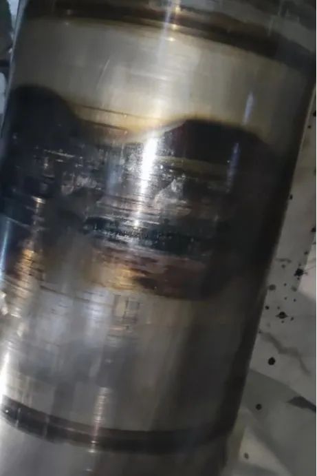 當(dāng)破碎腔內(nèi)進(jìn)入鐵件時(shí),動(dòng)定錐相互擠壓、活塞缸液壓瞬時(shí)升高之后降低,主軸在下降的同時(shí)發(fā)生傾斜,導(dǎo)致止推三件套磨損異常。并且主軸傾斜時(shí),主軸與偏心銅套之間的油膜會(huì)遭到破壞,造成偏心銅套的損傷。從回油濾網(wǎng)上銅屑的異常增多,可以很好的體現(xiàn)設(shè)備的磨損情況。嚴(yán)重時(shí)甚至?xí)斐善你~套、機(jī)架銅套等備件的變形失效,而引發(fā)的設(shè)備突發(fā)性停機(jī)故障。