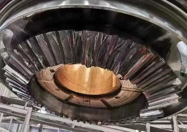 安裝大小齒輪時未將齒輪嚙合間隙調(diào)整到設(shè)計標(biāo)準(zhǔn)值之內(nèi),或者運行過程中,其他影響齒輪間隙的備件(如:多缸系列的上、下推力軸承、單缸系列的偏心耐磨板、機架襯套等)磨損嚴重甚至磨損不均勻,接觸面有傾斜未及時更換,從而影響大小齒輪間嚙合間隙,在生產(chǎn)中易產(chǎn)生打齒現(xiàn)象。